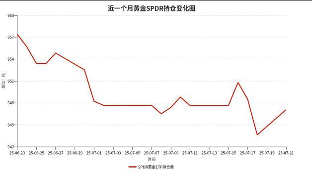 SPDR持仓方面,近期持仓量从6月23日的957.4吨震荡回落至7月21日的947.06吨,降幅超10吨,显示市场对黄金的避险需求有所减弱。持仓持续下滑通常对金价构成压力,但近期降幅趋缓,且7月中旬出现小幅增持,暗示部分资金逢低布局。若未来持仓能企稳于940吨上方,金价或获支撑;若跌破该水平,则可能进一步回调。短期需关注持仓变化与金价的背离信号。
