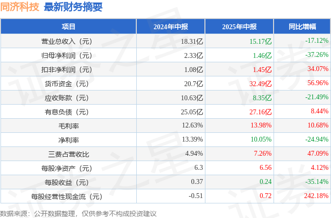据证券之星公开数据整理,近期同济科技(600846)发布2025年中报。截至本报告期末,公司营业总收入15.17亿元配资平台最新消息,同比下降17.12%,归母净利润1.46亿元,同比下降37.26%。按单季度数据看,第二季度营业总收入6.14亿元,同比下降26.35%,第二季度归母净利润5882.4万元,同比下降62.87%。本报告期同济科技公司应收账款体量较大,当期应收账款占最新年报归母净利润比达205.59%。